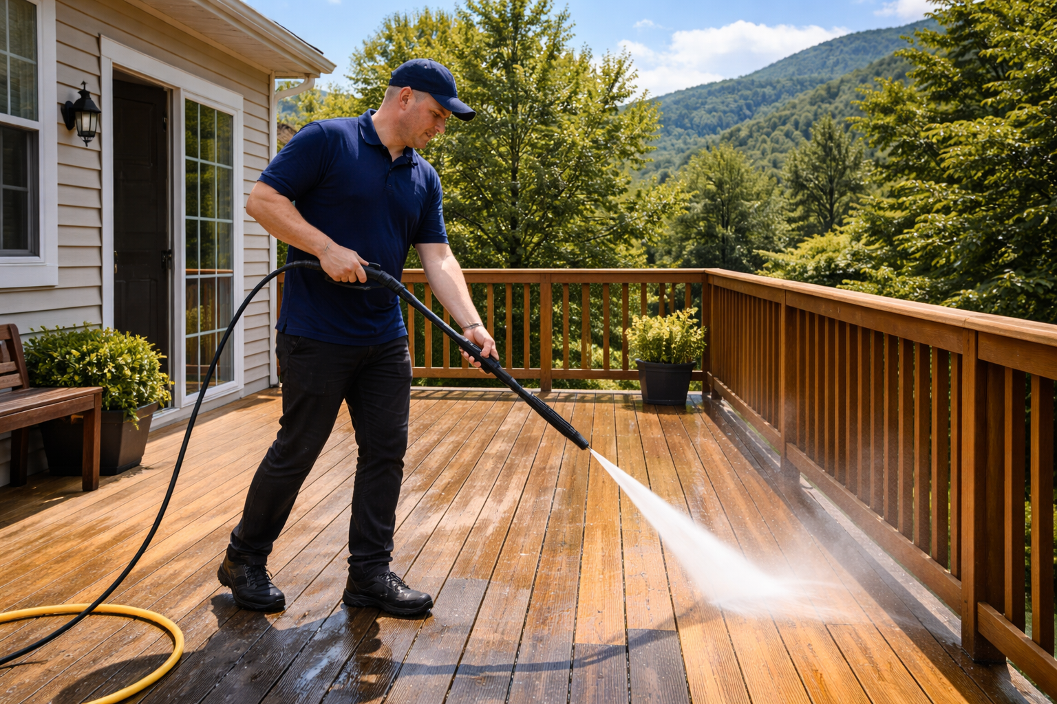 Weather, dirt, and algae can quickly make decks look worn and slippery. Our deck cleaning service safely restores wood and composite decks by removing buildup while preserving the integrity and natural beauty of the surface.