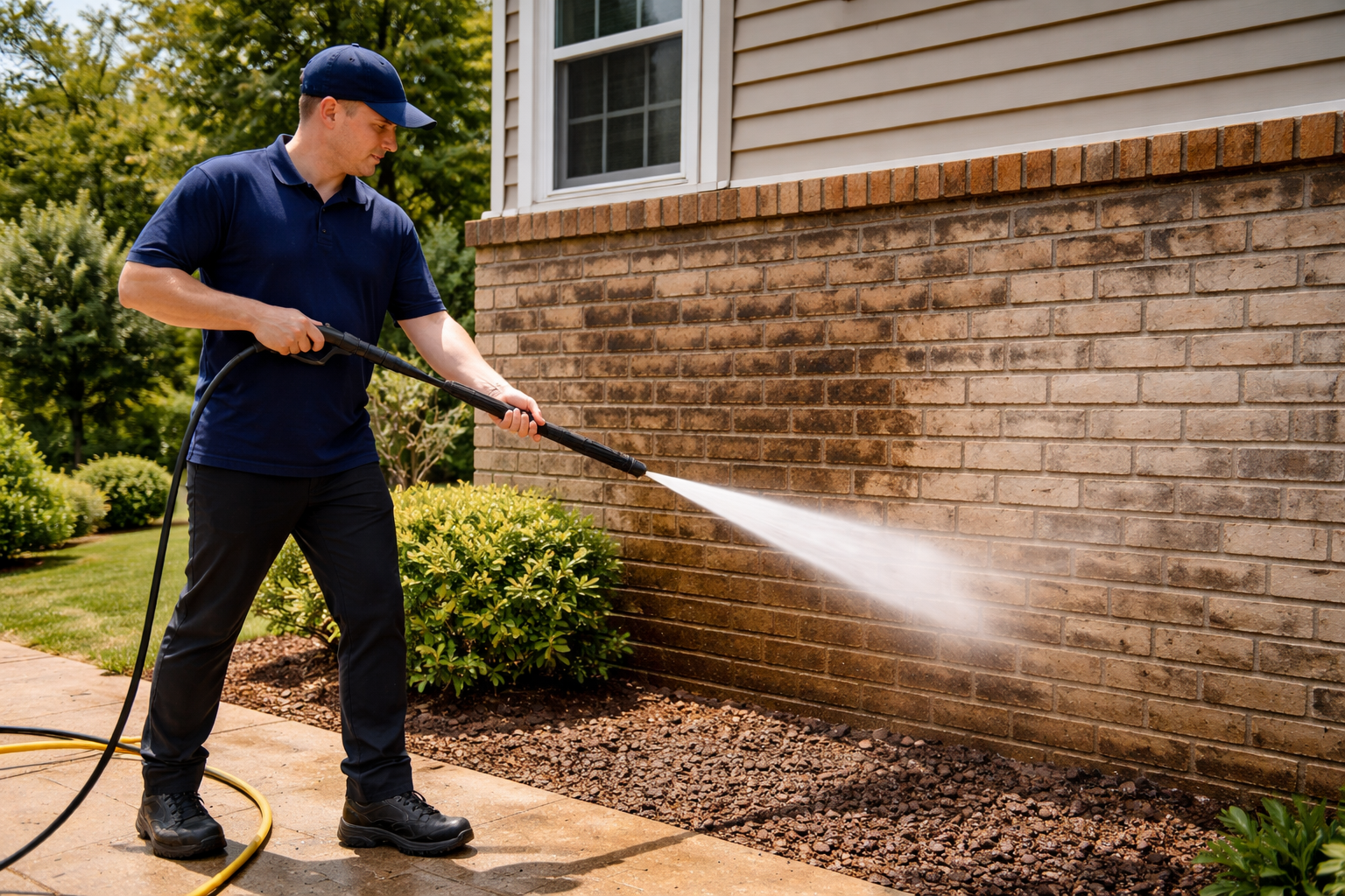 Brick surfaces can collect years of dirt, moss, and staining. Our professional cleaning process removes grime and restores the natural color of brick walls and exterior masonry while protecting the structure from long-term damage.